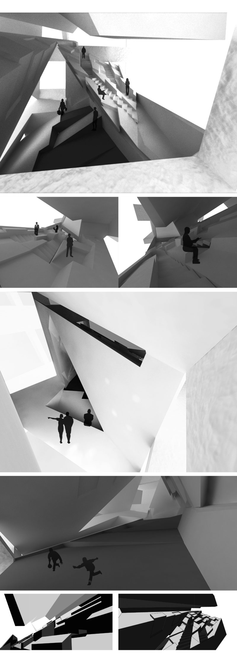 Carving Stairs Carving Stairs An early project from architecture school in which I develop a stair-like structure bridging two buildings.