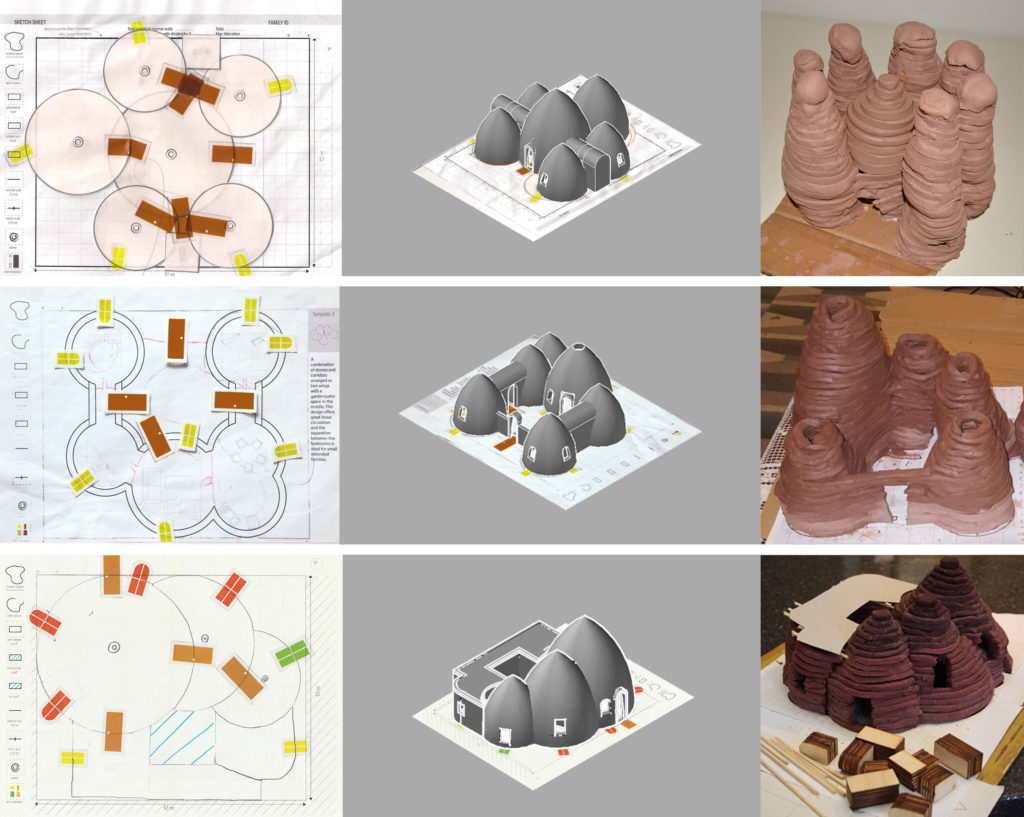 End-user interaction and personalization are increasingly popular in design due to rapid advances in computer aided design and digital fabrication. But many marginalized communities do not benefit from these advances. In refugee camps for example, people live for years in temporary shelters not intended for permanent habitation, and end up haphazardly customizing them. To address this problem, I designed this novel co-design approach using a paper-based kit to support the custom design and construction of sandbag shelters. The kit guides users to design their future homes by sketching and annotatively expressing space, light, and privacy preferences. This input is scanned and automatically processed to generate structurally stable 3D models, optimized to fit camp constraints, but guided by the user’s design. The system also produces step-by-step instructions for physically assembling the structure at a small scale. I envision this workflow and optimization algorithm as a proxy for architects and builders in scenarios where their deployment is costly or impractical at scale.